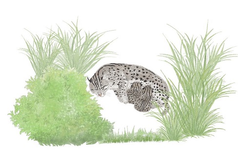 1.湿地の近くの森林エリアなど、スナドリネコが生息できる場所を確保するため、自動撮影カメラを利用して生息状況を調査する